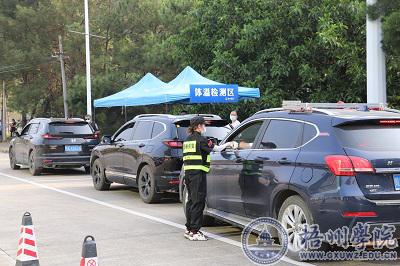 早上7点左右,学校相关工作人员、各二级学院教师及学生志愿者们早早到位,准备迎接新生。接新志愿者身着红、黄、蓝等颜色的工作服,每当看见新生从车站走出,他们便会举起手中写着“梧州学院”的牌子向新生微笑,测温后主动接过他们手中的行李,与他们交流并一路护送上车,直达学校。