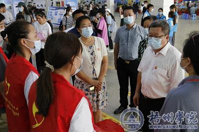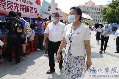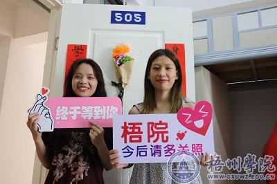 迎新期间,学校领导韦仕珍、杨奔、曹迎、玉振明、邱房贵、梁业华、麻新纯、宾月景分别来到校门、新生报到点和宿舍看望新生和家长,并慰问迎新工作人员和志愿者。