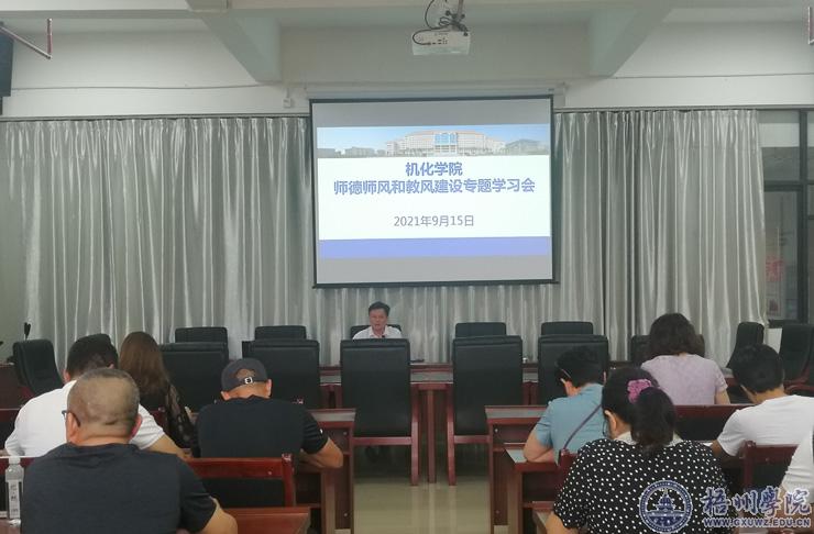 9月15日下午,机化学院组织全体教师在明科楼十三楼会议室召开师德师风和教风建设专题学习会。