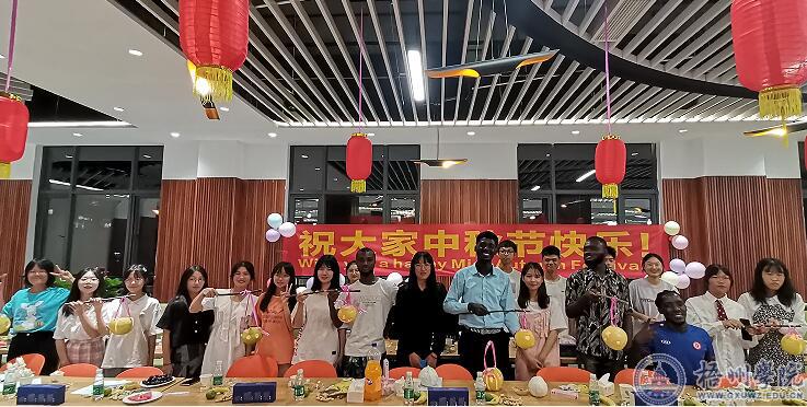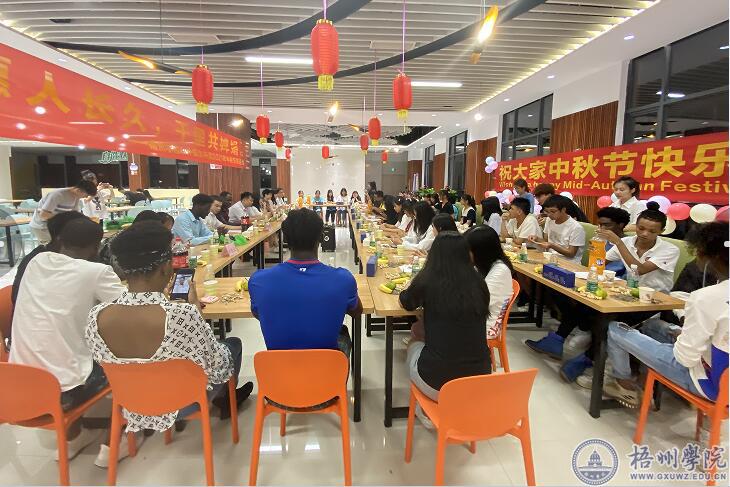 9月21日晚,由学生工作处、国际交流处和外国语学院联合举办的“但愿人长久,千里共婵娟”——梧州学院中外师生共度2021年中秋节茶话会在北片区食堂二楼举行。来自中国和一带一路沿线7个国家的中外师生70余人参加了本次活动。 活动伊始,中国师生用英语向留学生介绍了中国传统节日中秋节的由来、习俗和神话故事,并祝愿大家在美丽的梧州学院找到属于自己的一轮明月度过一个快乐的中秋。 活动中,中外学生分组制作灯笼、猜灯谜、进行单人演唱和集体合唱的才艺表演,大家一起沐浴着窗外融融月光,沉浸在浓浓节日情意中。 [图文:覃驿婷]