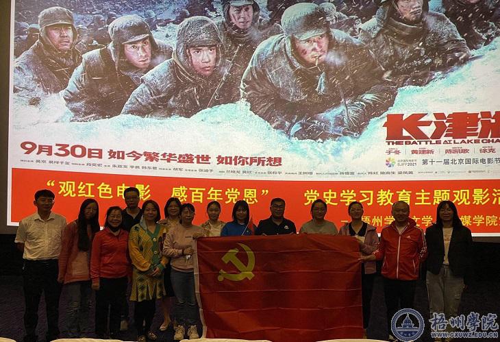 10月13日,文学与传媒学院党委举行了“观红色电影 感百年党恩”党史学习教育主题观影活动,组织全体师生党员走进影院,集体观看电影《长津湖》,共同回顾抗美援朝战争中的长津湖战役那一段波澜壮阔的历史。