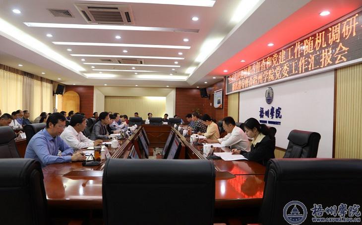 10月15日上午,全区高校巡视整改督查和党建工作随机调研、随机指导梧州学院党委工作汇报会在学校明理楼八楼第一会议室召开。督查调研组组长莫海燕,督查调研组成员龚锡元、陈纲、周也力、梁科,学校领导韦仕珍、曹迎、邱房贵、梁业华、麻新纯、宾月景,各单位、各部门负责人参加会议。会议由学校党委书记韦仕珍主持。