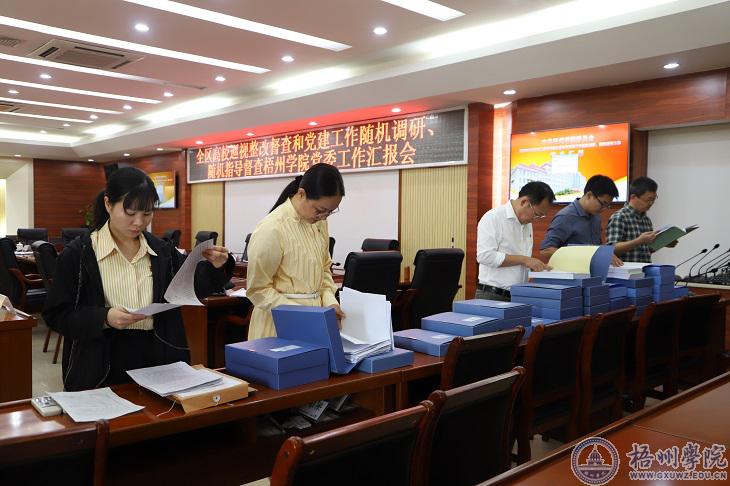 汇报会后,督查调研组查阅我校整改台账和党建工作台账。
