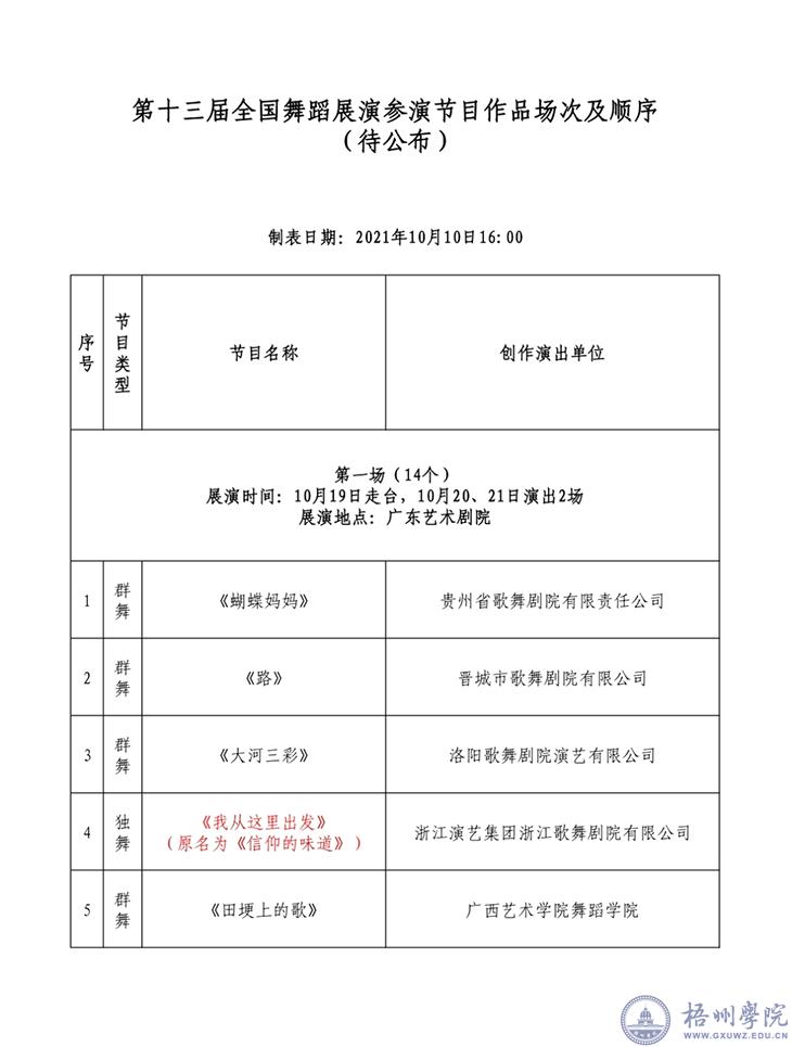 第十三届全国舞蹈展演将于2021年10月21日在广州市拉开帷幕。我校原创舞蹈《走呦走呦》受邀于10月20日、21日在广东艺术剧院进行两场演出。