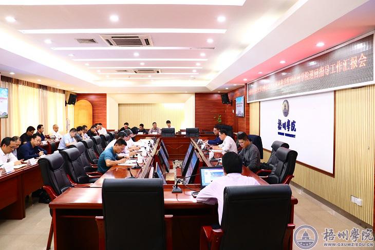10月20日上午,自治区党委党史学习教育第十五巡回指导组到我校检查指导工作,工作汇报会在明理楼八楼第一会议室召开。巡回指导组成员张劲松、王洪俊、何红力,学校领导杨奔、曹迎,各相关部门负责人,学校党史学习教育领导小组成员及各工作组长、副组长参加会议。会议由巡回指导组组长张劲松主持。