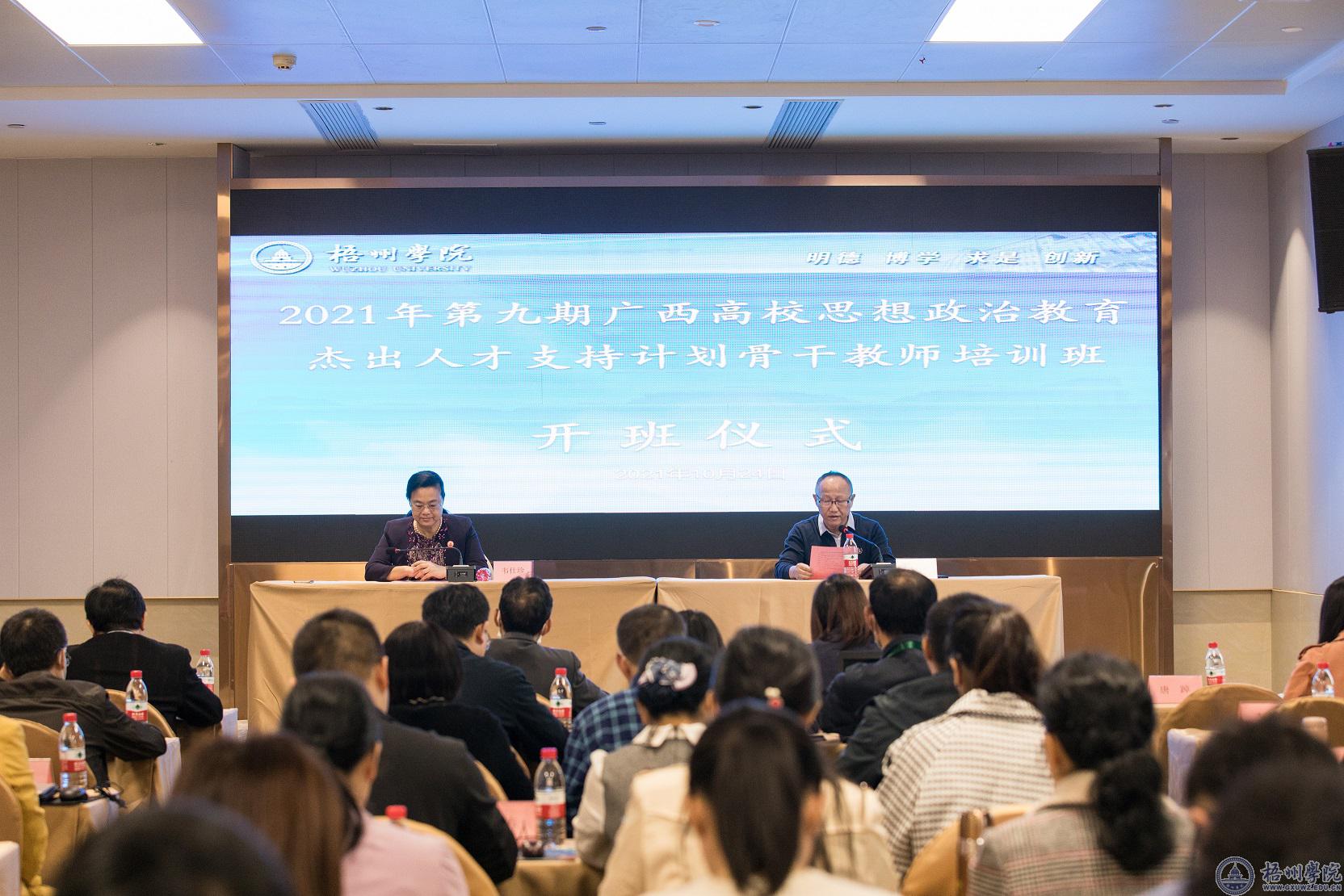 10月24日上午,由自治区教工委、教育厅主办,我校承办的全区高校思想政治教育杰出人才支持计划骨干教师培训班在梧州开班。校党委书记韦仕珍出席开班仪式,来自全区高校的60多名学员参加培训,开班仪式由我校马克思主义学院院长尹杰钦主持。