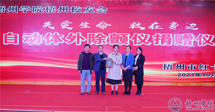 梧州学院校友积极响应关爱师生生命健康的号召,通过梧州市红十字会为学校捐赠一台AED自动体外除颤仪,并现场为师生们讲解演示AED自动体外除颤仪的使用方法。