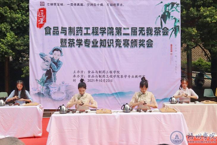 为贯彻落实茶学专业应用型人才培养计划,提高茶学专业学生的综合实践能力,10月23日下午,学校食品与制药工程学院茶学专业在A4篮球场举办“无我茶会”系列活动,茶学专业全体学生参与本次活动。学校党委组织部(统战部)部长黄健武、学生工作部(处)部(处)长李德华、教师教育学院院长谢龙华受邀参加活动。