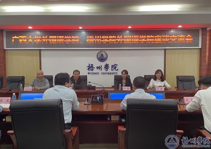 11月4日下午,广西大学外国语学院院长罗选民教授一行4人来我校外国语学院开展对口合作(支援)工作交流。外国语学院领导班子全体成员、教研室主任及骨干教师参加交流座谈会。