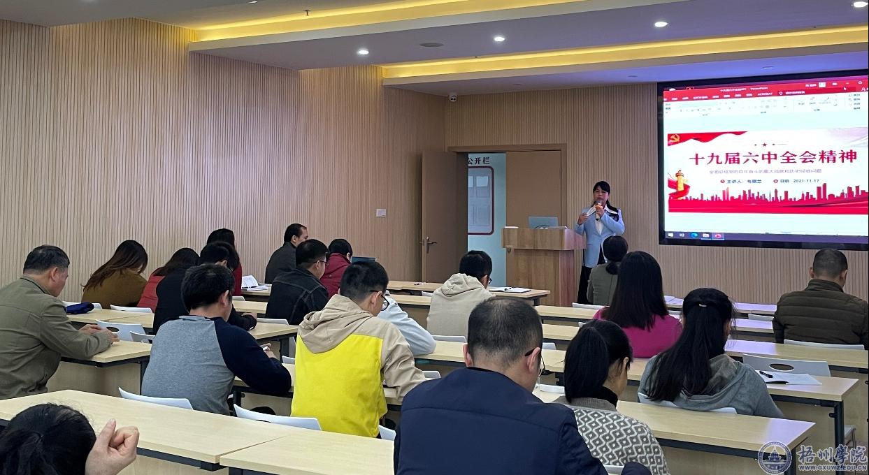 11月17日,大数据与软件工程学院组织全体教师专题学习党的十九届六中全会精神。会议由学院党委书记吴燕端主持,副书记韦翠兰领学。