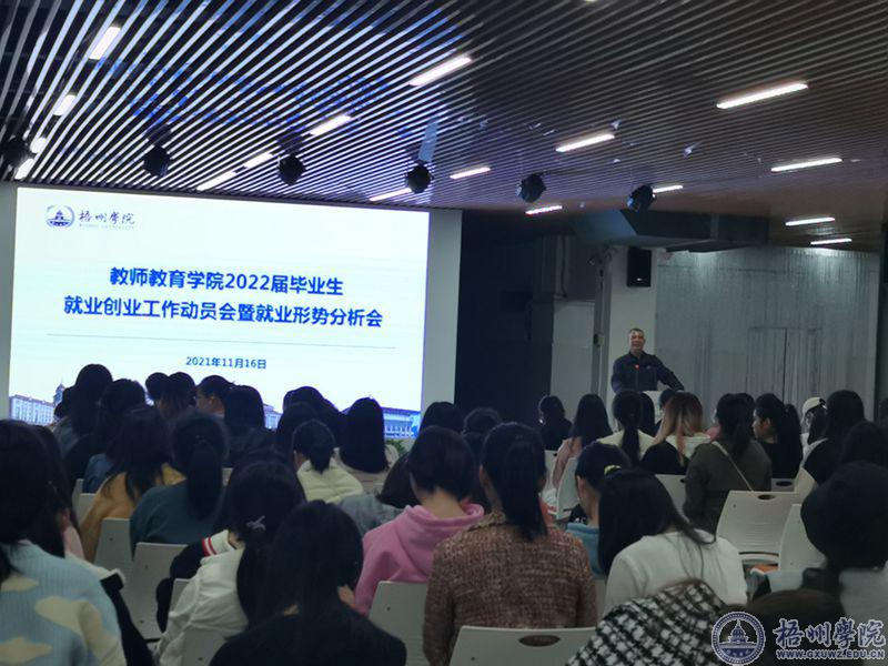 11月16日晚,教师教育学院在体育馆负一楼大学生就业服务中心举行2021届毕业生就业创业动员会。