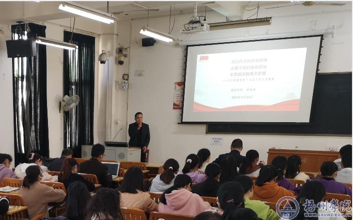 11月24日下午,外国语学院党委组织师生党员深入学习贯彻党的十九届六中全会精神,邀请学校党委宣传部副部长唐景成教授作《学习贯彻党的十九届六中全会精神》专题党课。