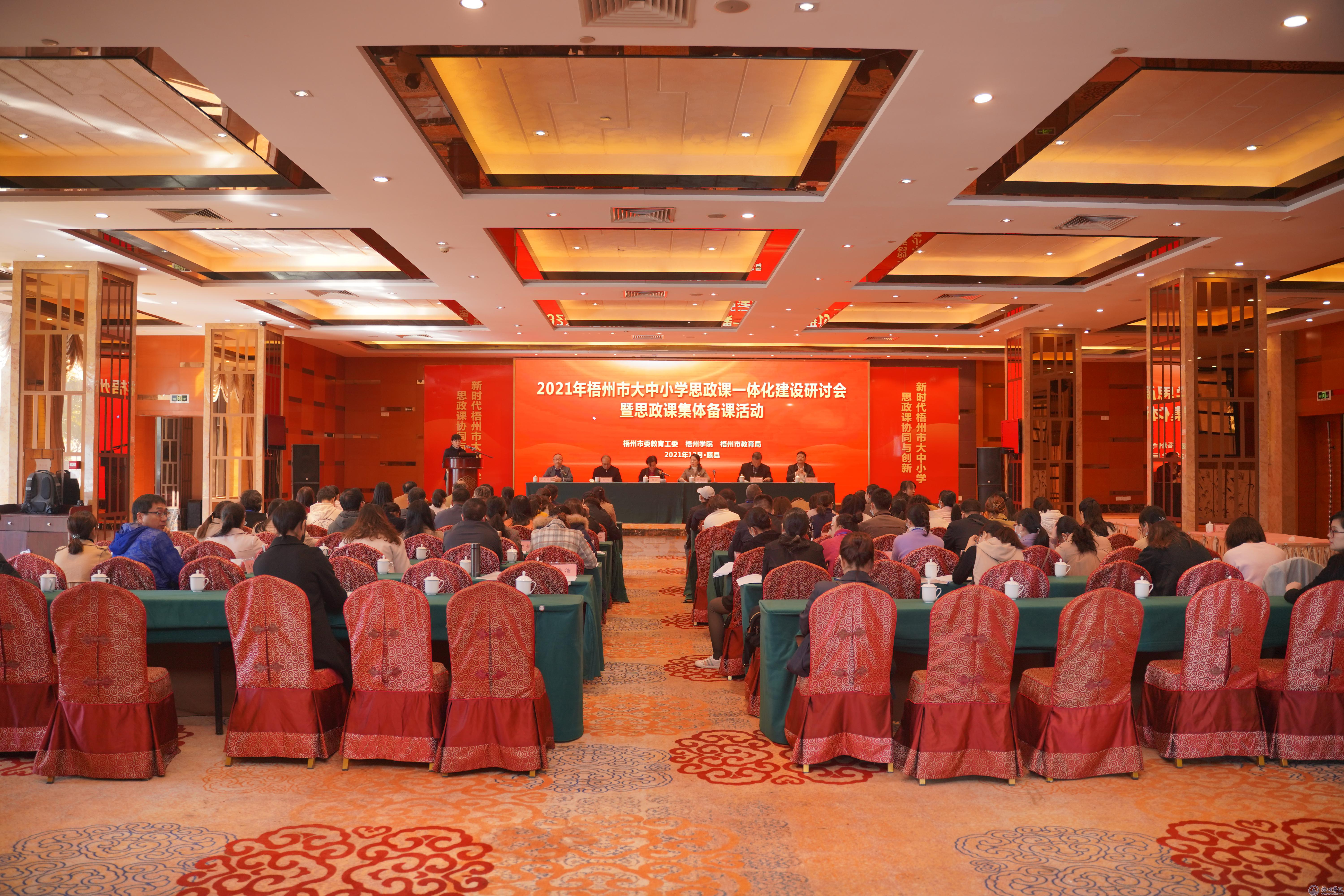 12月1日上午,由梧州学院、梧州市教育工作委员会、梧州市教育局主办的“2021年梧州市大中小学思政课一体化建设讨会暨思政课集体备课活动”启动仪式在藤县举行。我校党委副书记曹迎,梧州市教育工作委员会书记、梧州市教育局局长覃映霞出席仪式并致辞,全市大中小学各学段的教师代表70多人参加仪式。仪式由我校马克思主义学院院长尹杰钦主持。