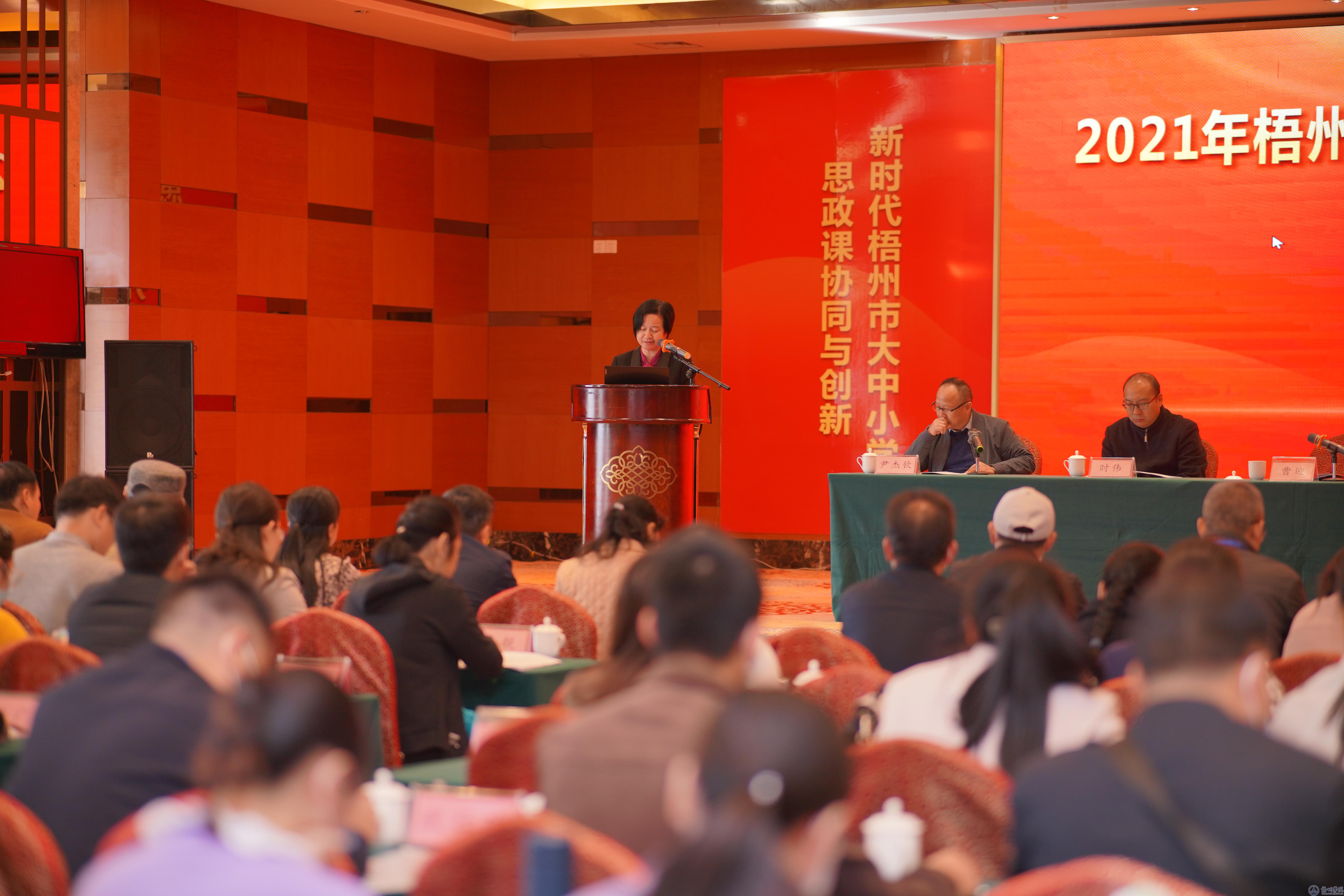 曹迎在致辞中围绕坚持以习近平新时代中国特色社会主义思想铸魂育人、进一步贯彻落实习近平总书记关于教育工作的重要论述、将党的十九届六中全会精神引向深入等方面阐述活动的重大意义。她指出,本次活动是我校与地方政府贯彻落实党中央、国务院、自治区党委关于思政课建设部署的重要举措,体现我校服务梧州地方经济社会发展、协同推动思政课一体化建设的巨大决心。她要求我校马克思主义学院进一步强化与梧州市教育工委、市教育局的交流合作,夯实学科建设基础,构建新时代梧州的大思政格局,提升新时代梧州大中小学思政课的协同与创新,提升课程育人实效,为党的伟大事业培养合格的建设者和接班人。她希望与会教师代表们提高政治站位、坚持理论与实践结合、树牢纪律意识、端正学习态度,做好研讨备课活动。