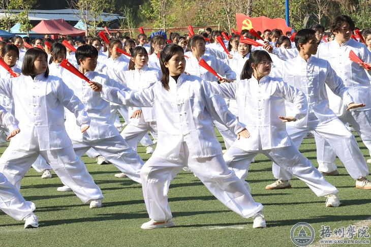 12月3日上午,学校第32届校运会开幕式在北校区田径场举行。开幕式后,太极功夫扇团体赛正式展开。