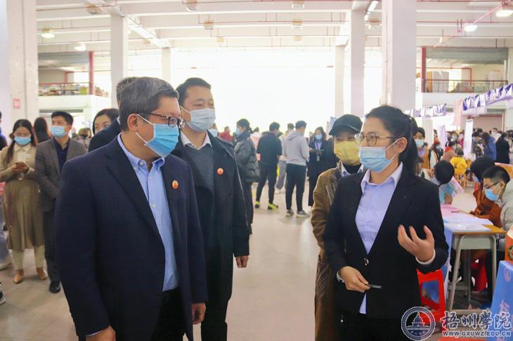 12月4日上午,学校在体育馆举办了2021年冬季毕业生双向选择洽谈会(以下简称双选会)。学校校长杨奔,相关单位、部门负责人到双选会现场走访,了解企业用人需求、应聘条件等就业信息,并与应届毕业生亲切交流,鼓励其紧抓机遇,积极求职就业。