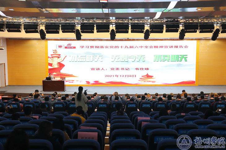 校党委书记韦仕珍宣讲党的十九届六中全会精神