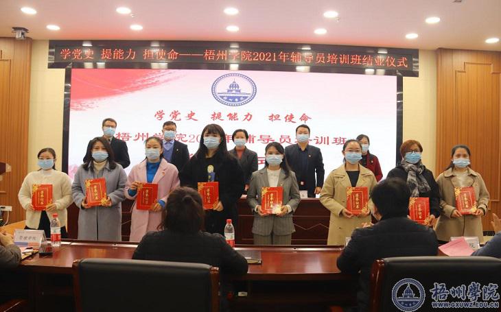 12月7日上午,我校在明科楼一楼多功能报告厅举办2021年梧州学院辅导员培训班结业仪式。校党委副书记曹迎出席结业仪式并讲话。全体培训班成员参加结业仪式。