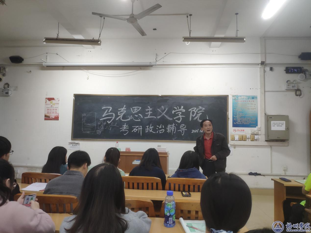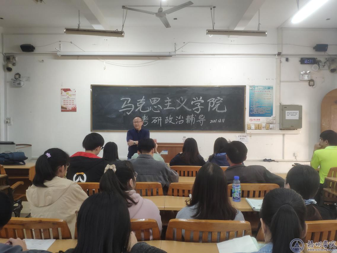 马克思主义学院在党史学习教育中开展“我为学生办实事”,近期为考研学子们开展考研政治辅导活动。学院党委书记张朝松、院长尹杰钦,哲学专业教研室教师吴军、张文俊、赵立研、谢亚涵、谭荣鸿,2018级哲学全体考研学子参加活动。活动由哲学专业教研室主任吴军主持。