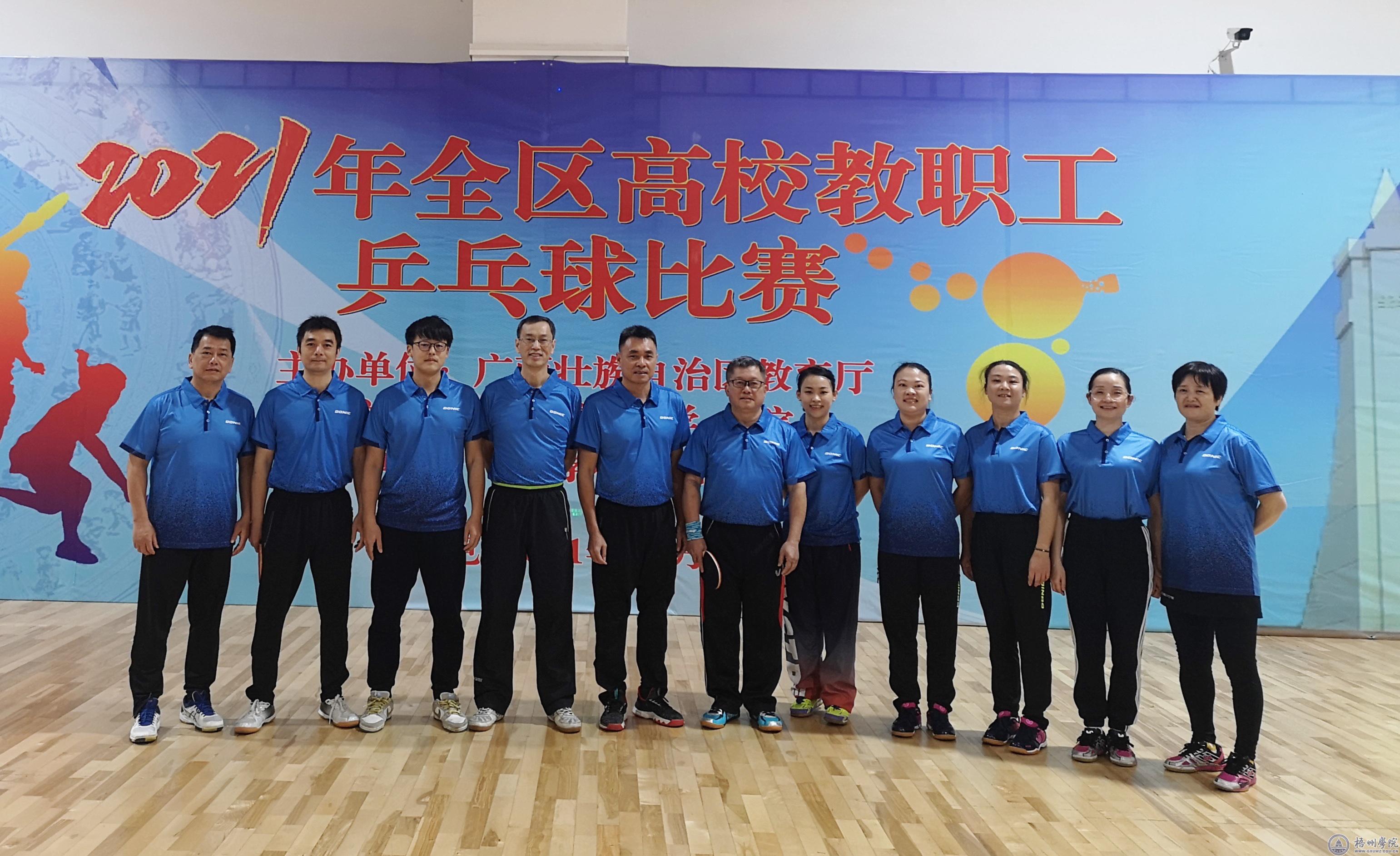 12月15日至16日,由自治区教育厅主办、百色学院承办的2021年全区高校教职工乒乓球比赛在百色学院体育馆举行。本次比赛,我校教职工乒乓球队发扬齐心协力、不畏强手的精神。经过两天的激烈角逐,我校代表队荣获混合团体比赛季军,校长杨奔荣获“校长组”男子单打第六名。