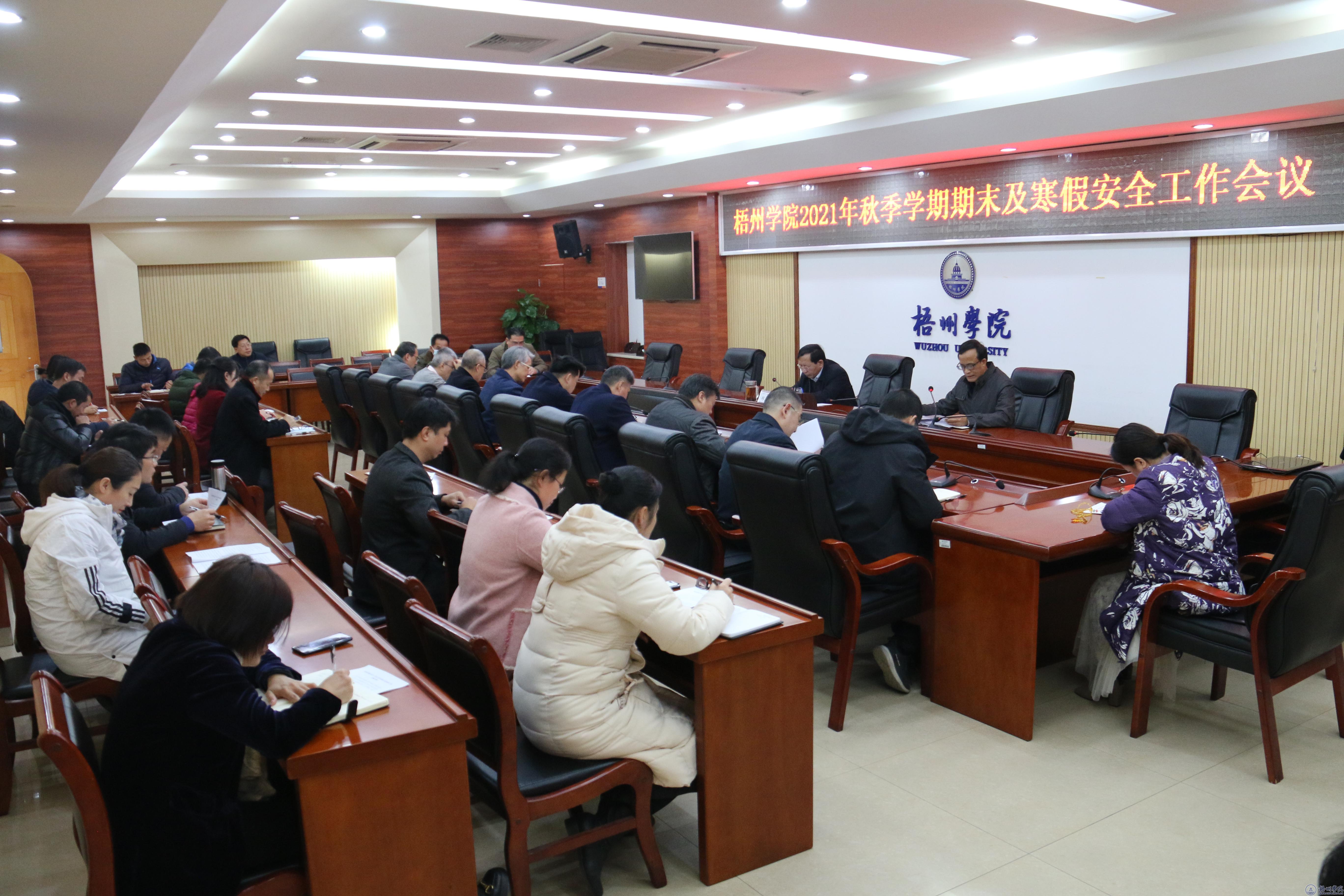 12月21日,我校在明理楼第一会议室召开了2021年秋季学期期末及寒假安全工作会议,会议由学校副校长邱房贵主持,各单位各部门负责安全工作的领导参加会议。