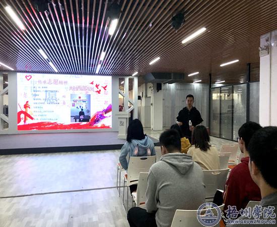 宣讲会上,彭祥轩围绕自己加入西部计划志愿者的初心和实际工作内容展开宣讲,并就志愿服务需要跨越的思想、家长、同学、恋人、年龄“五道关”提供了应对建议。他引用习近平总书记对志愿者的殷切寄语,鼓励毕业生们“好儿女志在四方,有志者奋斗无悔”。希望青年人积极到基层中去建功立业,让青春之花绽放在祖国最需要的地方,在实现中国梦的伟大实践中书写别样精彩的人生。