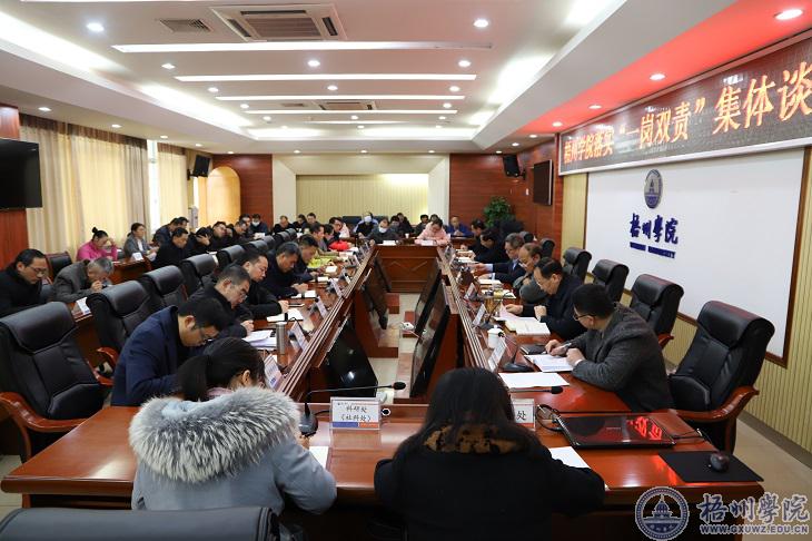 12月30日,学校召开落实“一岗双责”集体谈话会。学校领导杨奔、玉振明、邱房贵、梁业华、麻新纯、宾月景,各单位、各部门主要负责人参加会议。会议由学校纪委书记梁业华主持。