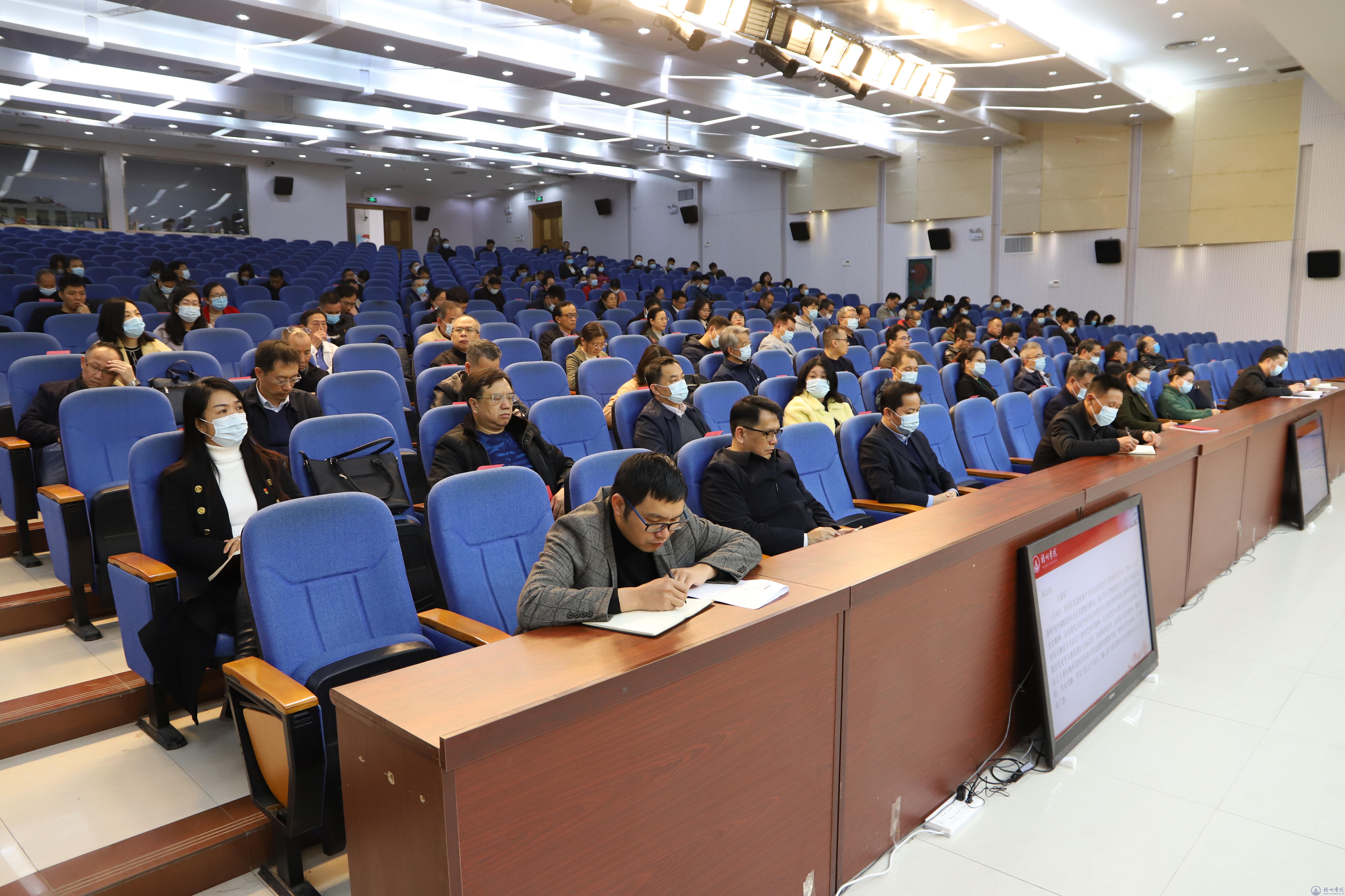 1月6日,学校党委在明理楼一楼学术报告厅召开党史学习教育总结会议,学校党史学习教育领导小组组长、党委书记韦仕珍作党史学习教育总结讲话。学校领导杨奔、曹迎、玉振明、邱房贵、梁业华、麻新纯、宾月景出席会议,学校党史学习教育领导小组成员,各工作组长、副组长,学校全体中层干部,全体党支部书记、专职组织员,教师党员和学生党员代表参加会议。会议由学校党史学习教育领导小组办公室主任、党委副书记曹迎主持。