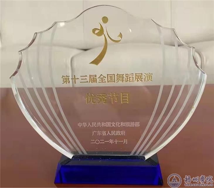 2021年10月,由文化和旅游部、广东省人民政府主办的第十三届全国舞蹈展演在广州市开幕。我校原创舞蹈《走呦走呦》作为精品作品入选,于10月20日、21日在广东艺术剧院进行两场演出,舞蹈新颖的编排、浓郁的民族特色、精湛的表演得到专家们的一致好评,充分展现了我校青年学子的风采和美育教育的丰硕成果。