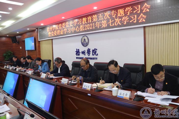 | 1月6日上午,我校在明理楼八楼第一会议室召开党委党史学习教育第五次专题学习会暨党委理论学习中心组2021年第七次学习会议。学校领导韦仕珍、杨奔、曹迎、玉振明、邱房贵、梁业华、麻新纯、宾月景和其他中心组成员参加集中学习。学校党委书记韦仕珍主持会议。