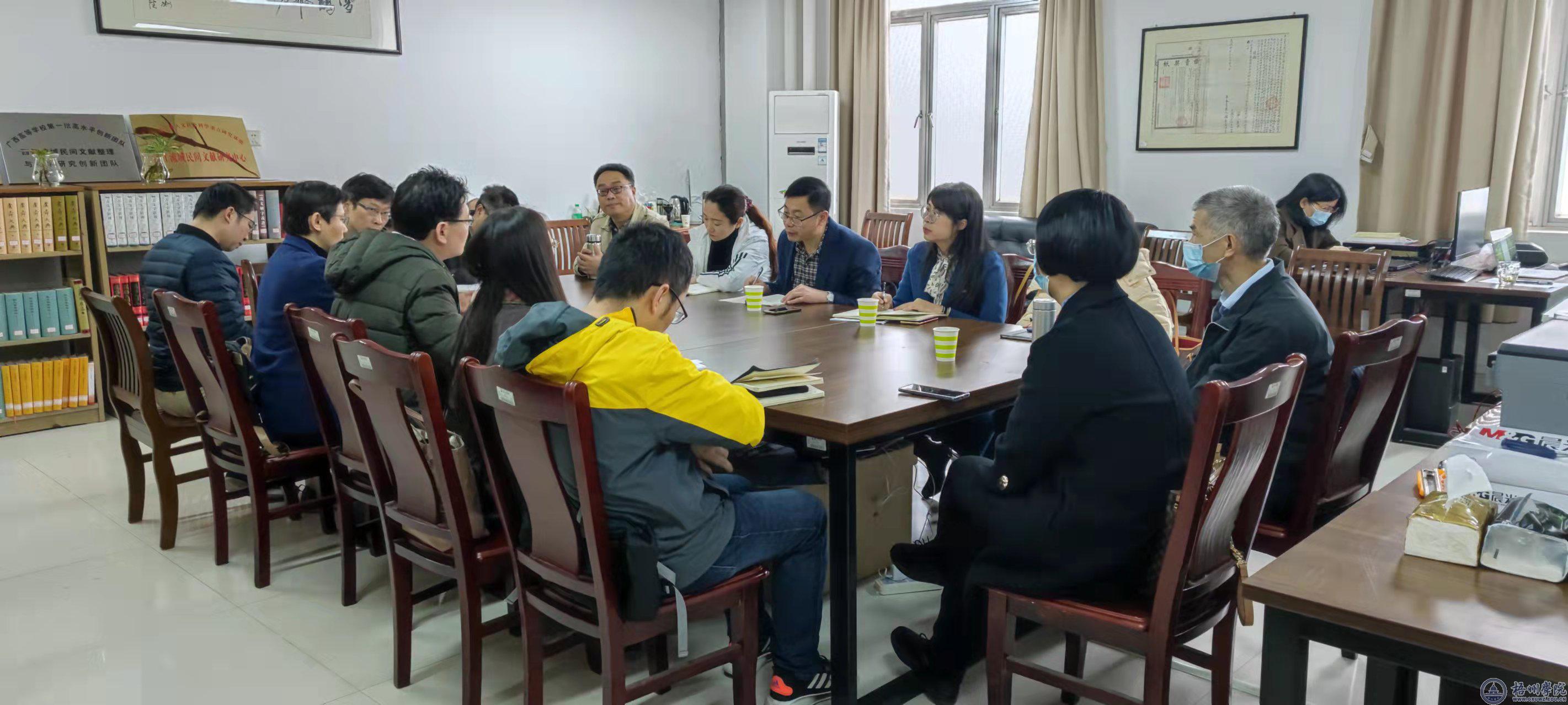 1月8日上午,文学与传媒学院在西江流域民间文献研究中心会议室召开科研工作调研座谈会。学校副校长宾月景出席座谈会,科研处处长郭慧、尹金萍博士、学院院长王建军、副院长段祥贵以及教师代表参加了此次会议,会议由学院院长王建军主持。