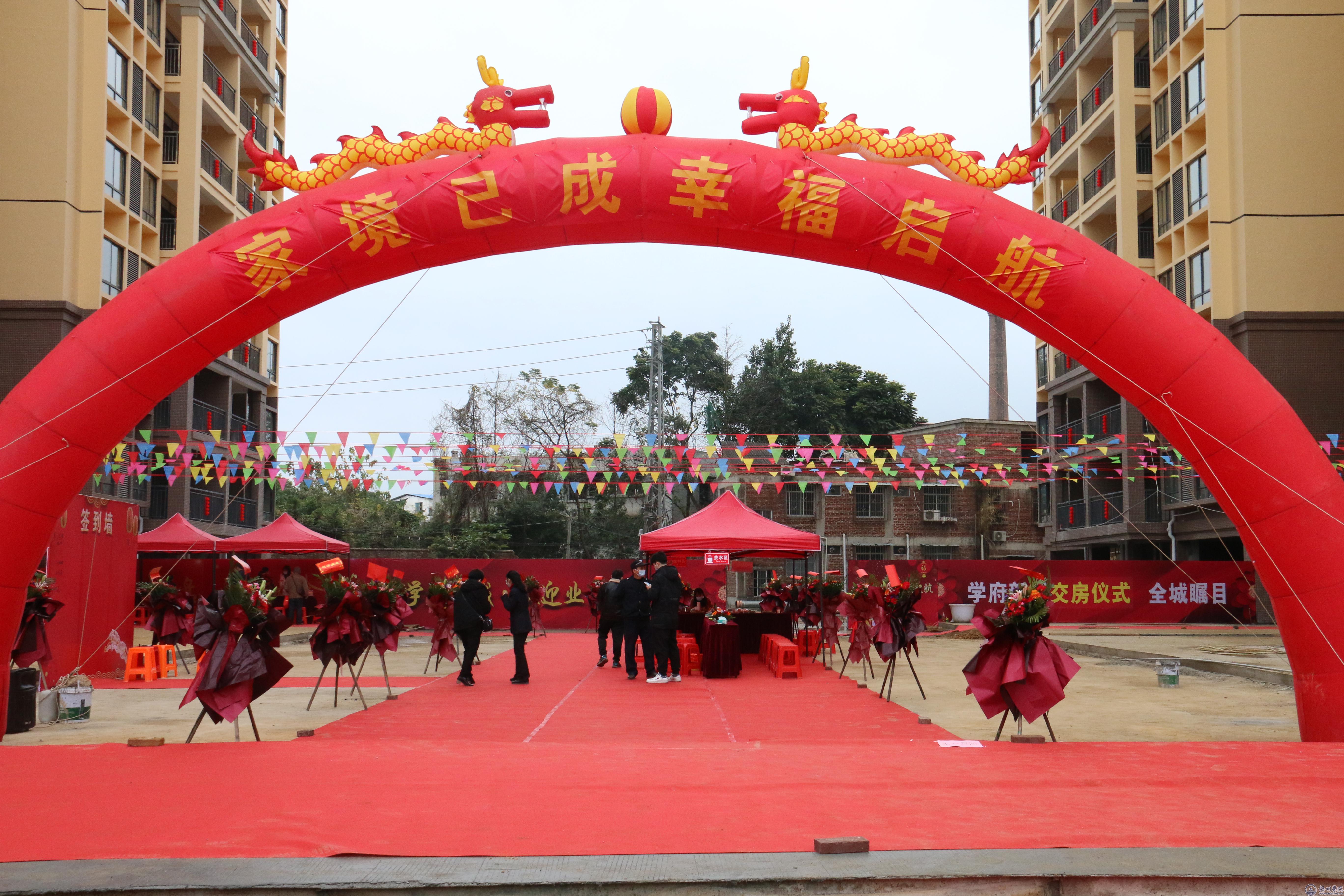 1月10日上午,学校限价房——学府新城交房!上午9时,已购房的教职工陆续到现场办理交房手续。在花园地带,红色的地毯、红色的帐篷、红色桌子,红色的气球拱门上书“家境已成 幸福启航”,处处洋溢着喜庆。