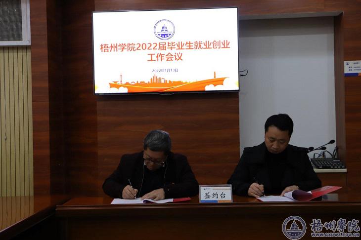 校长杨奔代表学校与学生工作部(处)、大数据与软件工程学院、商学院和管理学院等就业创业工作责任单位代表签订2022届毕业生就业创业工作目标责任书。
