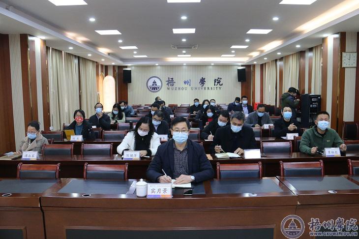 学校在明理楼七楼视频会议室设立分会场,学校副校长宾月景,党委(校长)办公室、纪委办公室、组织部、宣传部、学工部(处)、人事处、教务处、国际交流处、财务处、国有资产管理处、后勤基建处、保卫处主要负责人,学校新冠肺炎疫情防控工作领导小组指挥部办公室主任、副主任,各工作组组长、副组长参加会议。