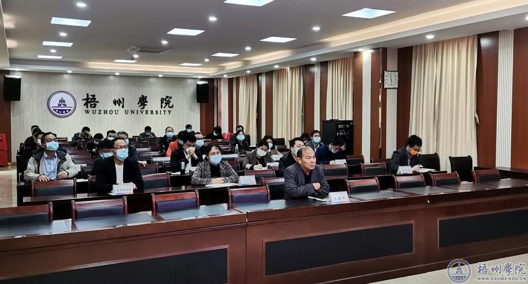 我校在明理楼七楼视频会议室设立分会场。副校长玉振明,办公室、宣传部、学生工作处、教务处、发展规划处、科研处、财务处、国有资产管理处、后勤基建处、校团委、各二级学院、图书馆相关人员在分会场参加会议。