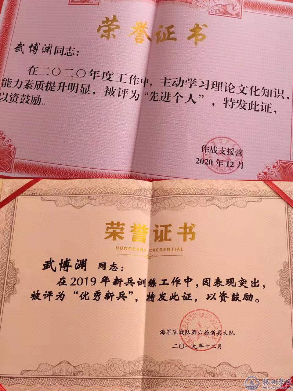在武博渊心中,人生二十载成长,承了太多家乡、学校、国家的照顾和帮助,服兵役是义务,也是回报。他说“从军是我自己在为回报社会而做出的努力,我想要突破自我,挑战青春。”他相信,部队才是他从幼稚蜕变成熟的地方。
