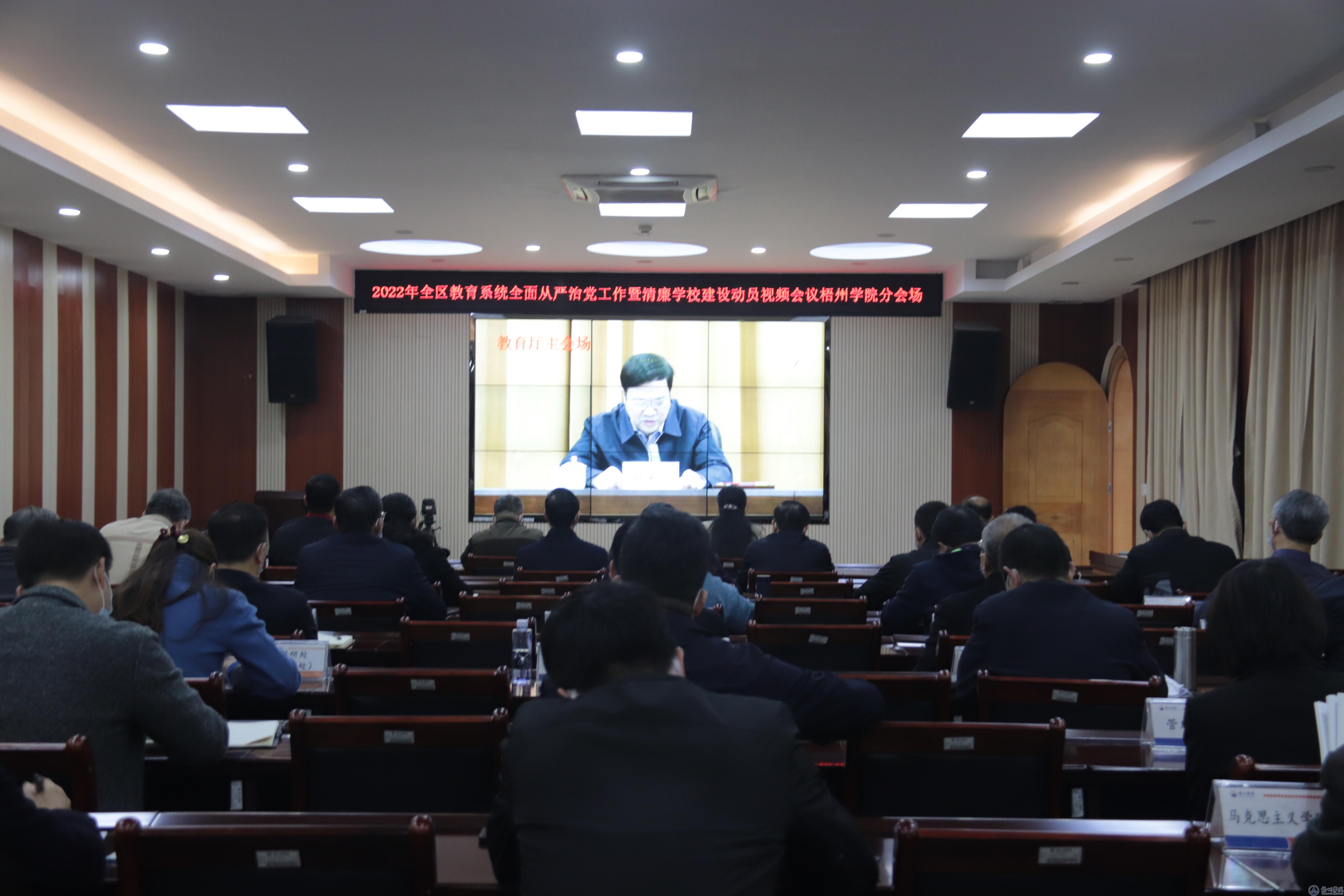 3月24日, 自治区党委教育工委、自治区教育厅党组召开全区教育系统全面从严治党工作暨清廉学校建设动员视频会议。会议总结了2021年全区教育系统全面从严治党工作情况,分析当前形势,研究部署了2022年全面从严治党和清廉学校建设工作。自治区党委教育工委书记,自治区教育厅党组书记、厅长刘友谊,自治区纪委监委驻教育厅纪检监察组组长林华出席会议并讲话,自治区教育厅副厅长孙国友主持会议。