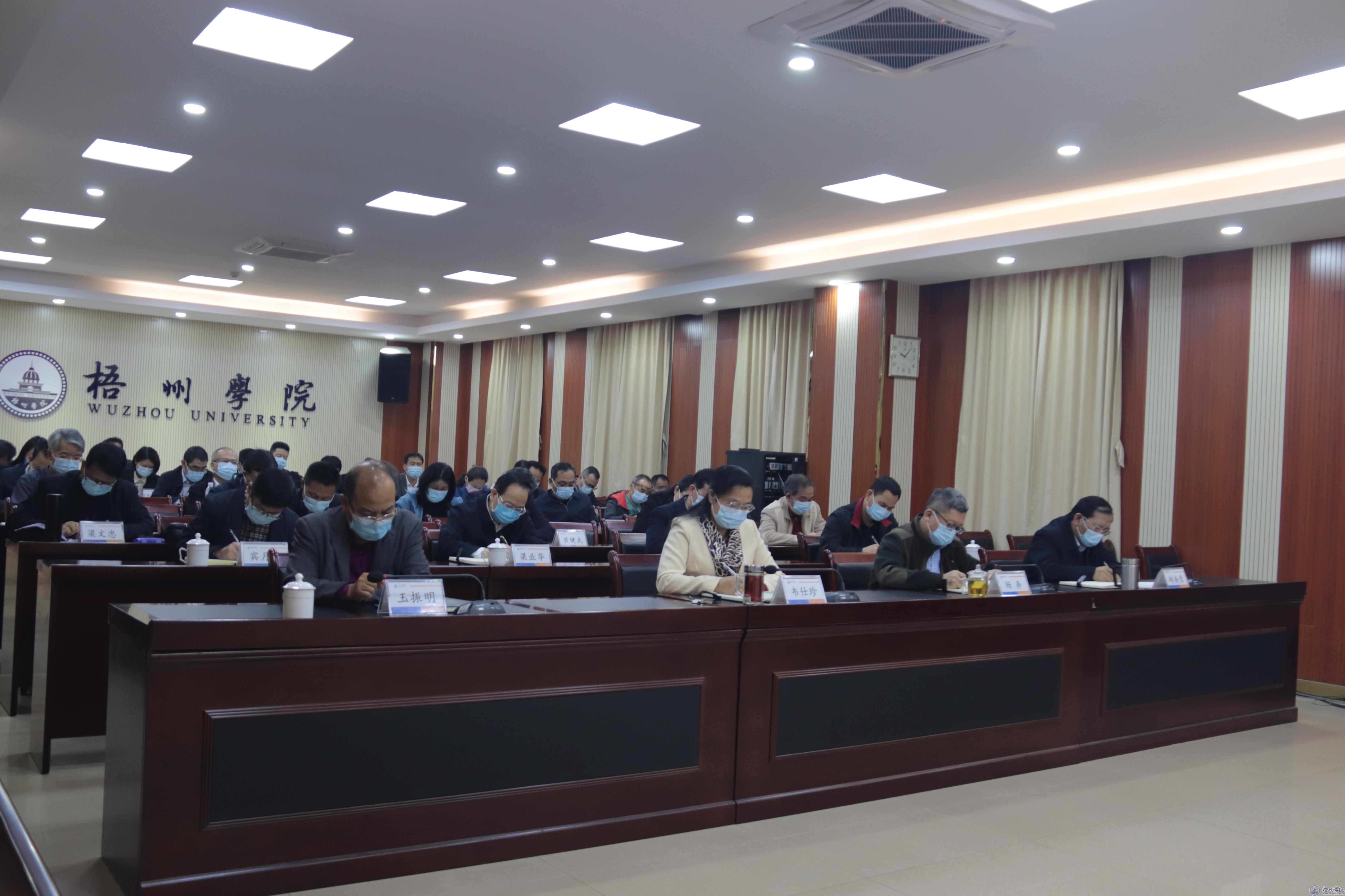 我校在明理楼七楼视频会议室设立分会场。全体校领导,学校党委委员、纪委委员,办公室、纪委办公室、党委组织部(统战部)、党委宣传部、学生工作部(处)、机关党委、人事处、科研处、财务处、国有资产管理处、后勤基建处主要负责人,各二级学院党委书记在分会场参加会议。