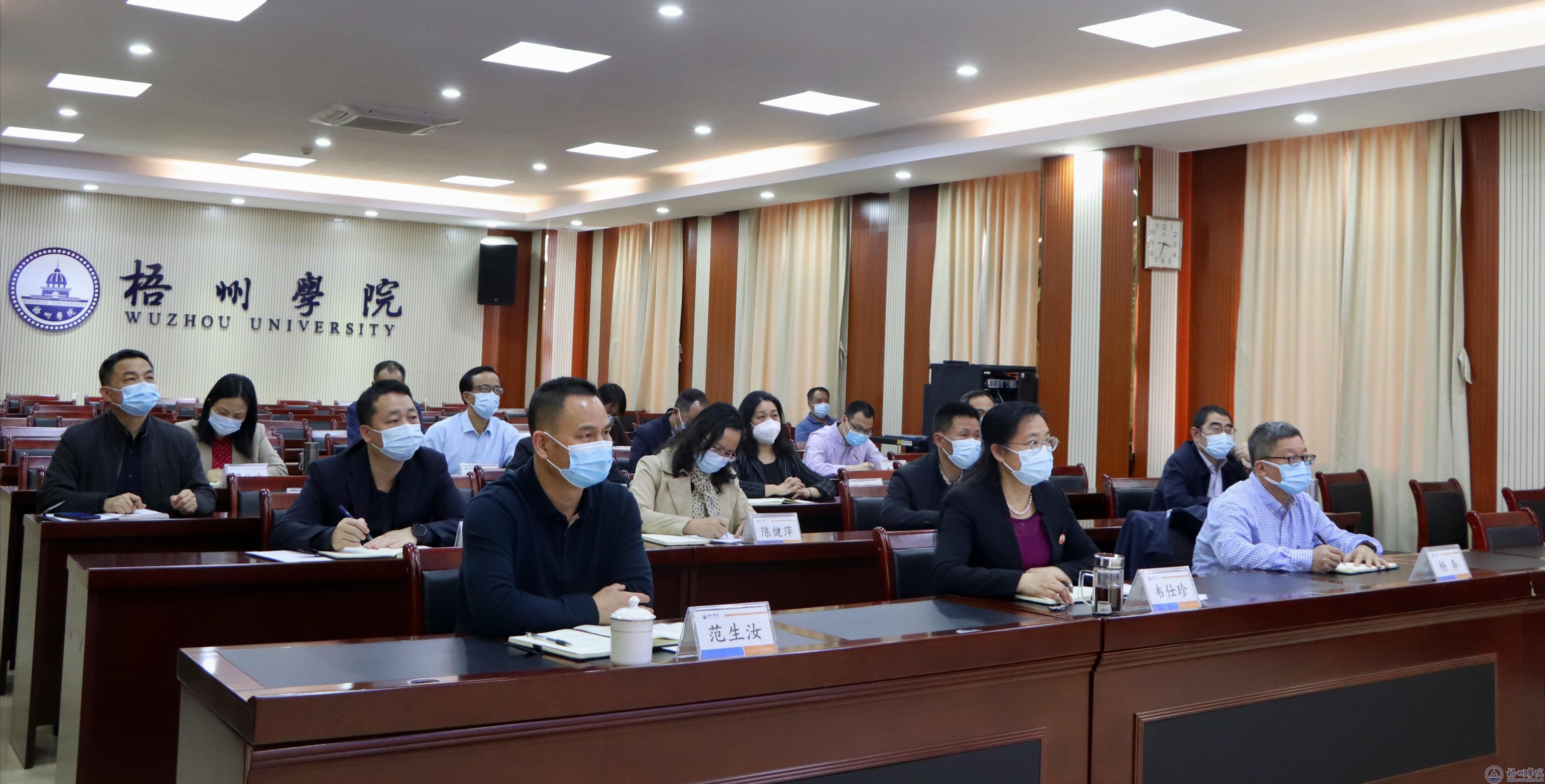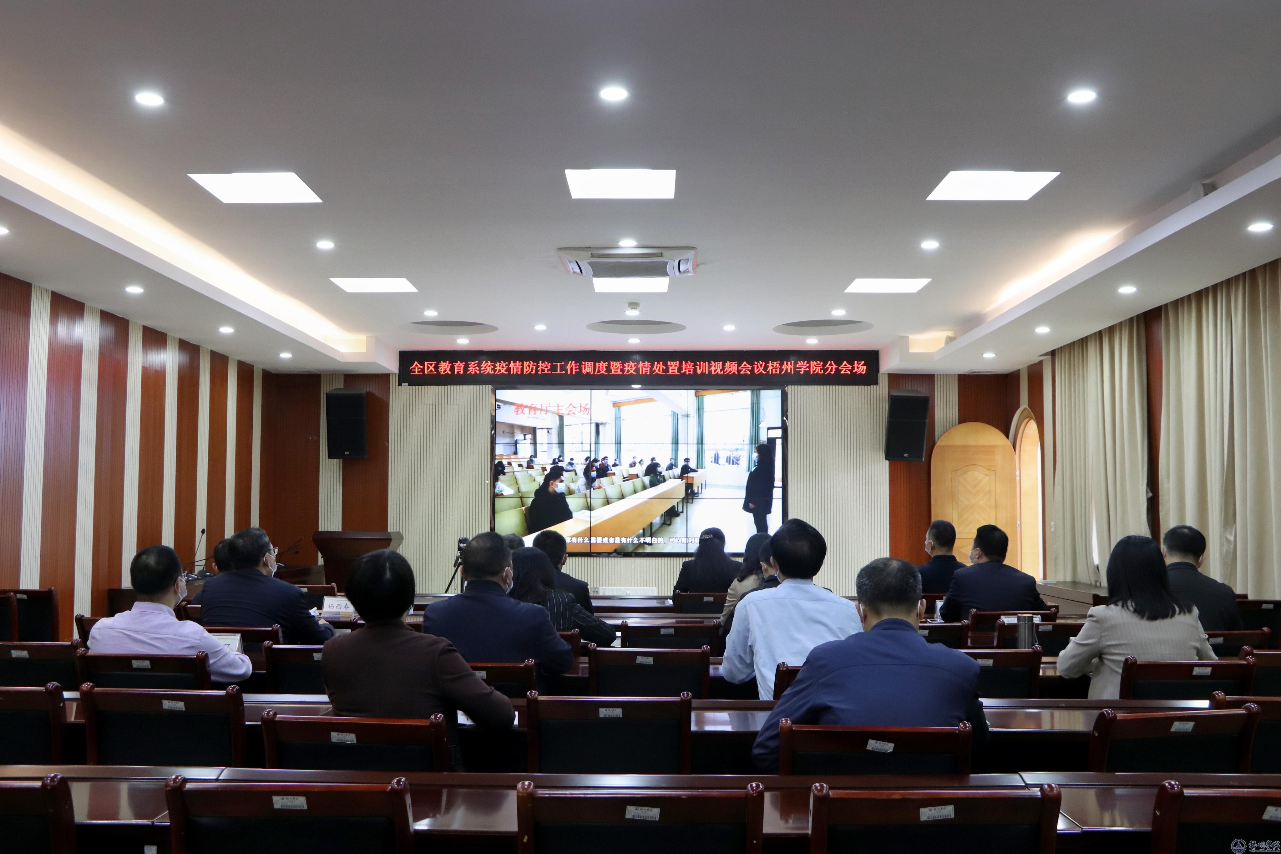 我校在明理楼七楼视频会议室设立分会场。学校领导韦仕珍、杨奔、范生汝; 办公室、党委宣传部、学生工作部(处)、人事处、教务处、国际交流处、财务处、国有资产管理处、后勤基建处、保卫处、继续教育学院主要负责人;学校疫情防控工作领导小组指挥部办公室、各工作组负责人在分会场参加会议。