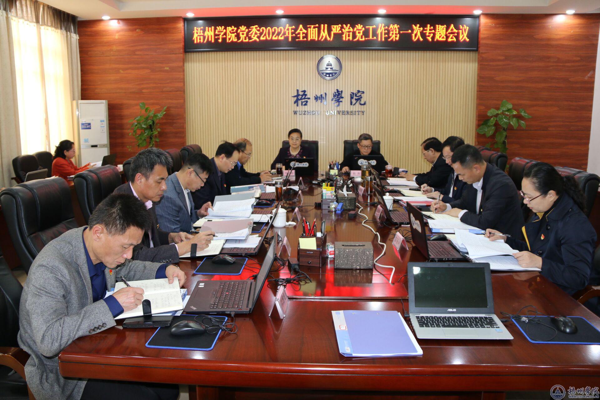 3月30日,学校党委常委会召开2022年全面从严治党工作第一次专题会议,贯彻落实上级有关会议精神,研究部署2022年全面从严治党工作。会议由校党委书记韦仕珍主持。