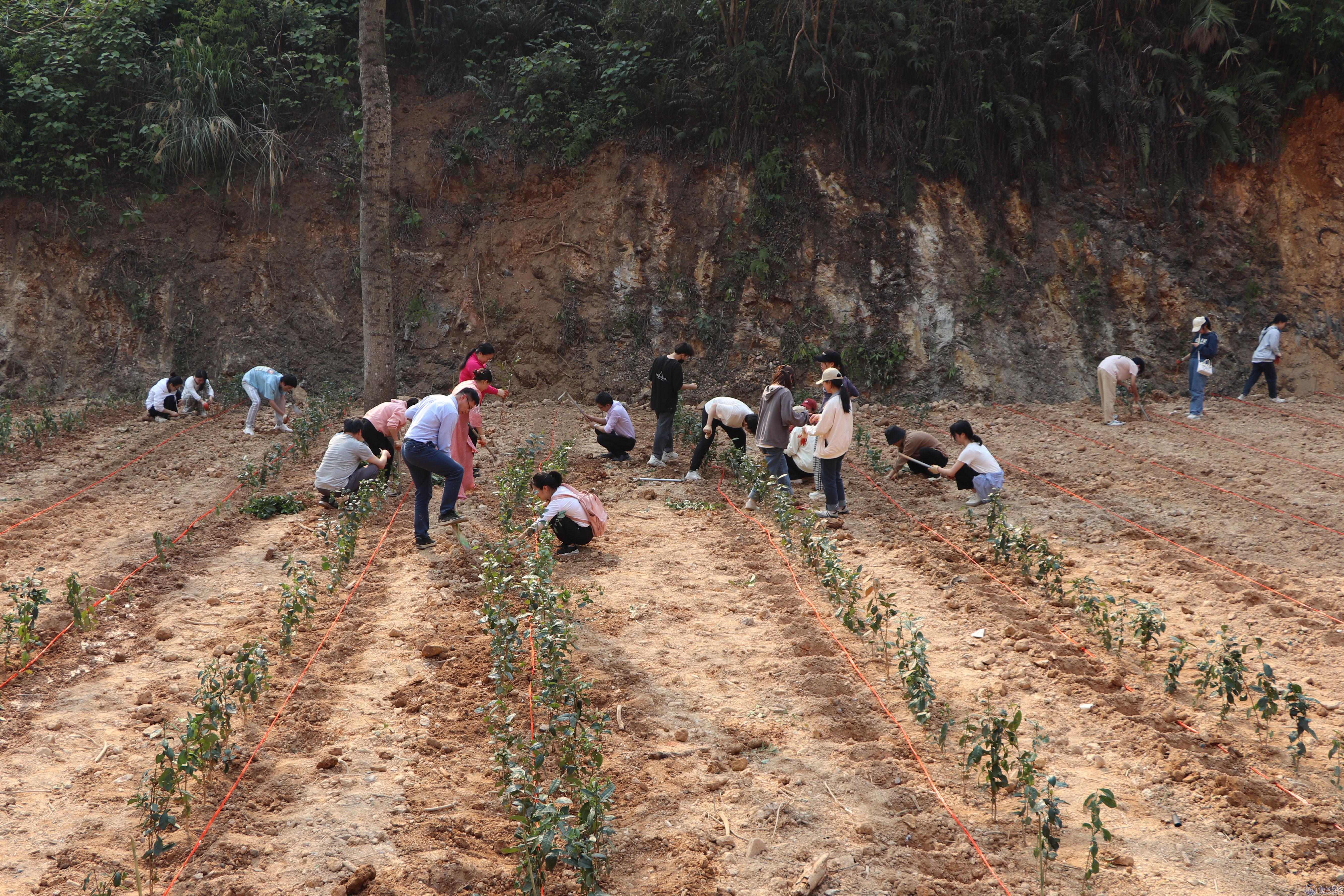 4月6日下午,学校组织师生开展六堡茶苗种植活动。学校党委书记韦仕珍、副校长宾月景,食药学院班子成员、教师代表、2021级茶学班同学参加了种植活动。