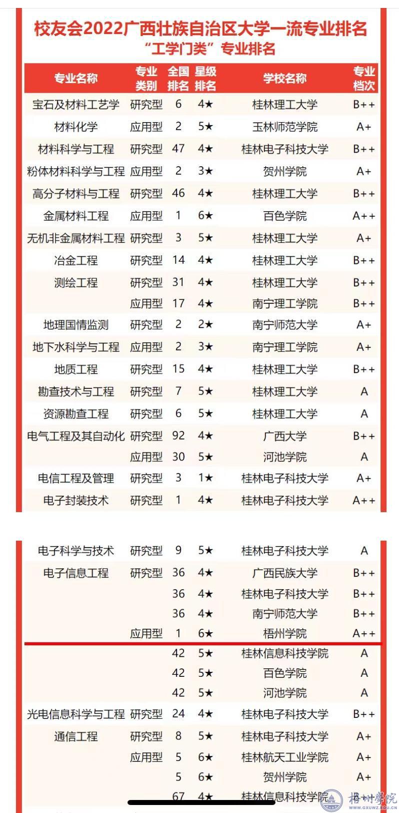 近日,全国第三方大学评价机构艾瑞深校友会网编撰、科学出版社出版发行的《2022校友会中国大学排名——高考志愿填报指南》发布了2022中国大学一流专业排名榜单,我校电子信息工程专业位列校友会2022中国大学电子信息工程专业(应用型)全国排名首位,星级排名六星,专业档次A++。我校国际经济与贸易专业(应用型)全国排名第9,星级排名六星,专业档次A+。
