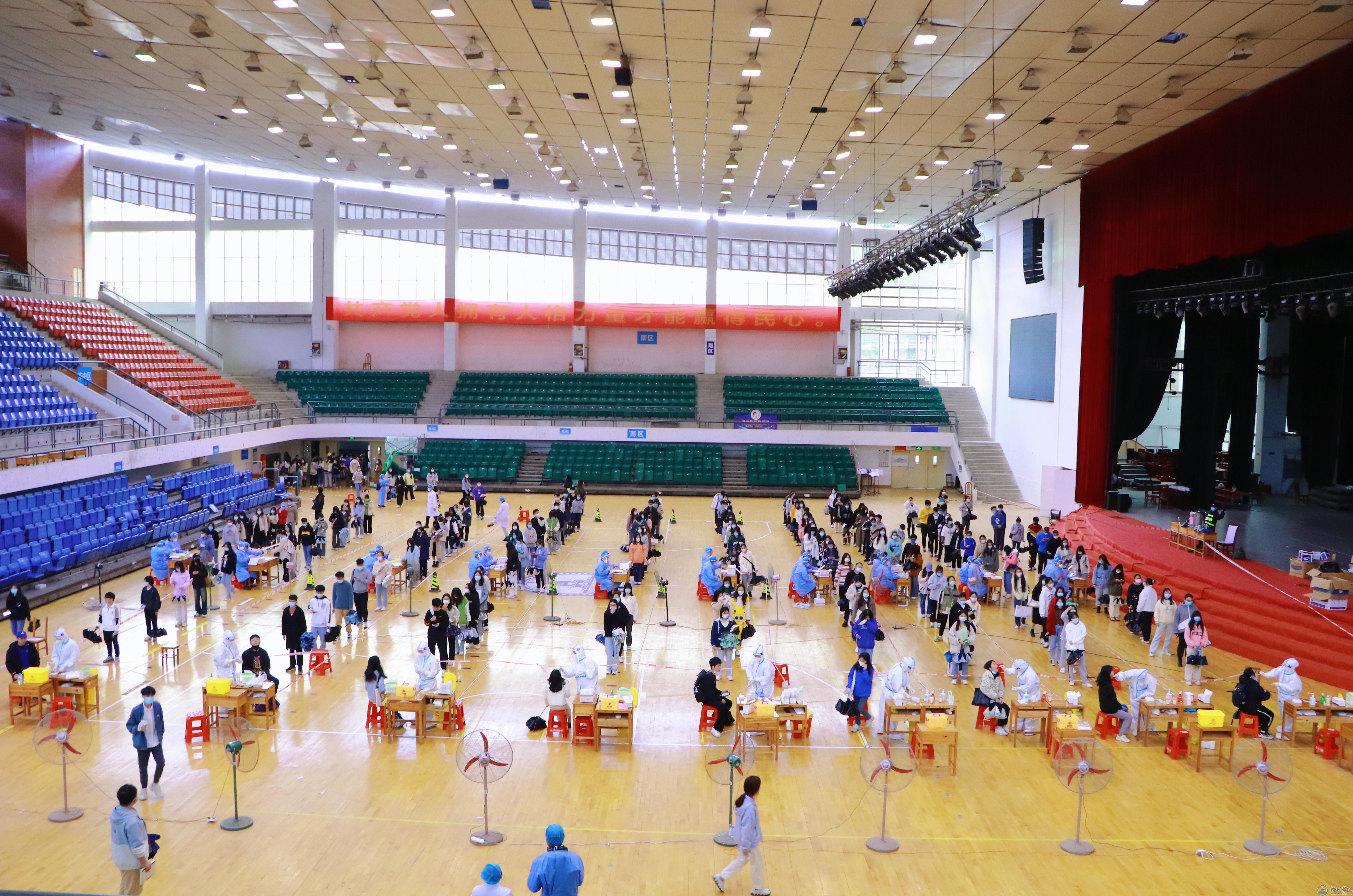 为进一步做好疫情防控工作,筑牢校园“防疫墙”。4月18日上午,我校在体育馆三楼面向全校师生开展第二轮全员核酸检测。