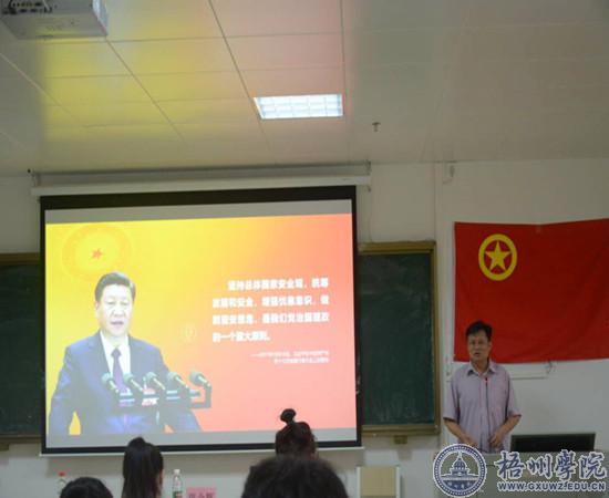 4月26日下午,食品与制药工程学院党委书记陈金辉在明科楼K410为学生干部作题为《国家安全 你我共同守护》国家安全教育专题讲座。