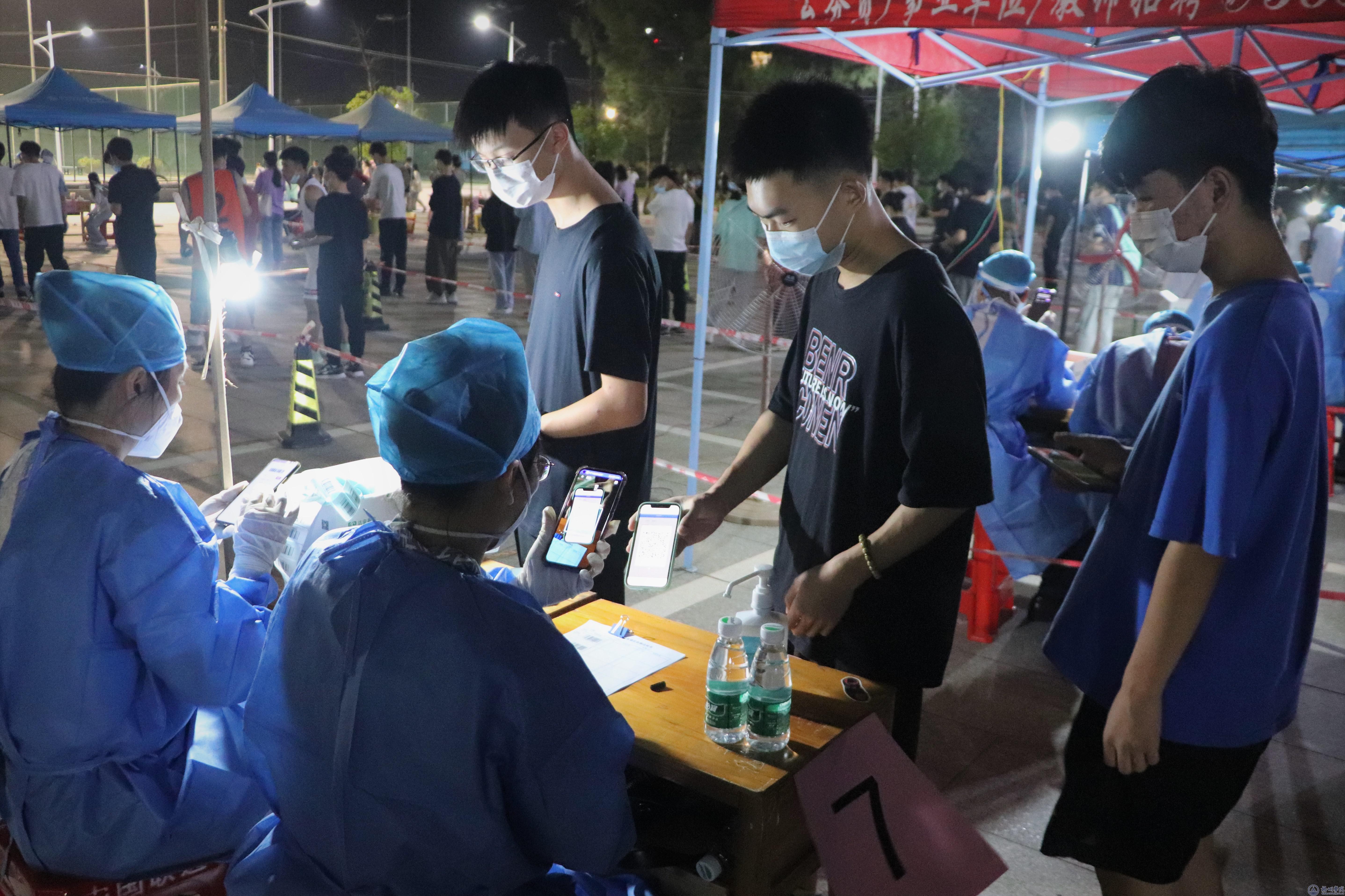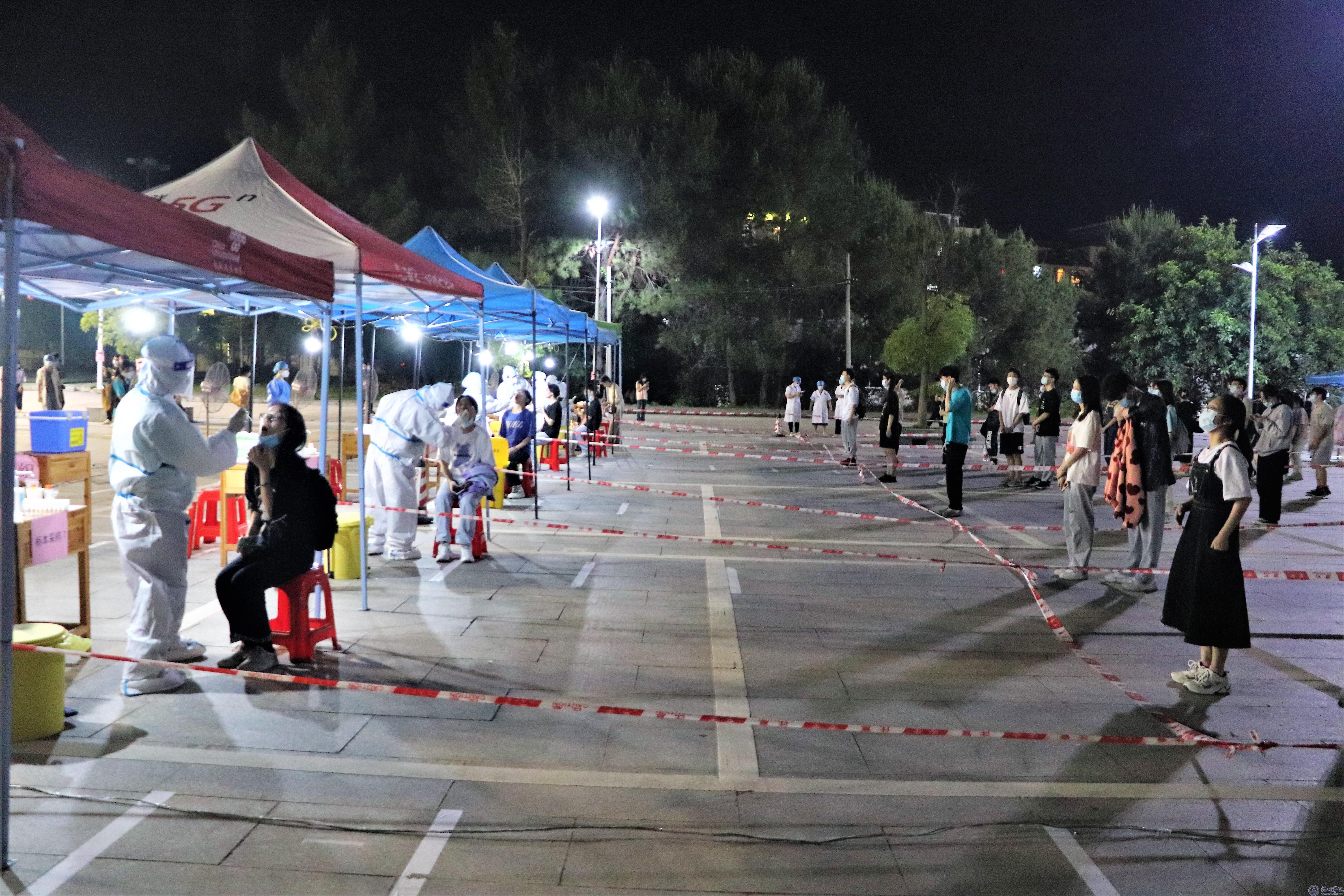 为确保整个核酸检测过程有序进行,我校提前组织专门人员布置场地,合理划分各区域,设置标准化采样场所。现场共设立23个独立采样通道,58名教工志愿者分布到每个检测点,师生在志愿者的引导下出示健康码、行程码、核酸检测信息码,体温检测正常方可进入指定采样点,确保采样过程快速、规范。核酸检测过程中,师生自觉佩戴口罩,遵守秩序,采样结束后有序离场。核酸检测工作从晚上8点持续到凌晨。