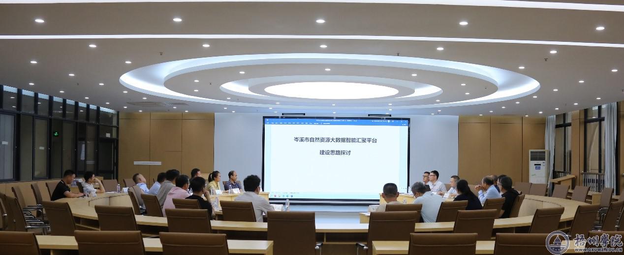 考察结束后,黄展平、陈文强一行与我校科研团队进行座谈,座谈内容为岑溪市自然资源大数据智能汇聚平台建设,就加快平台建设、矿山生态环境信息化处理,双方展开学习交流。