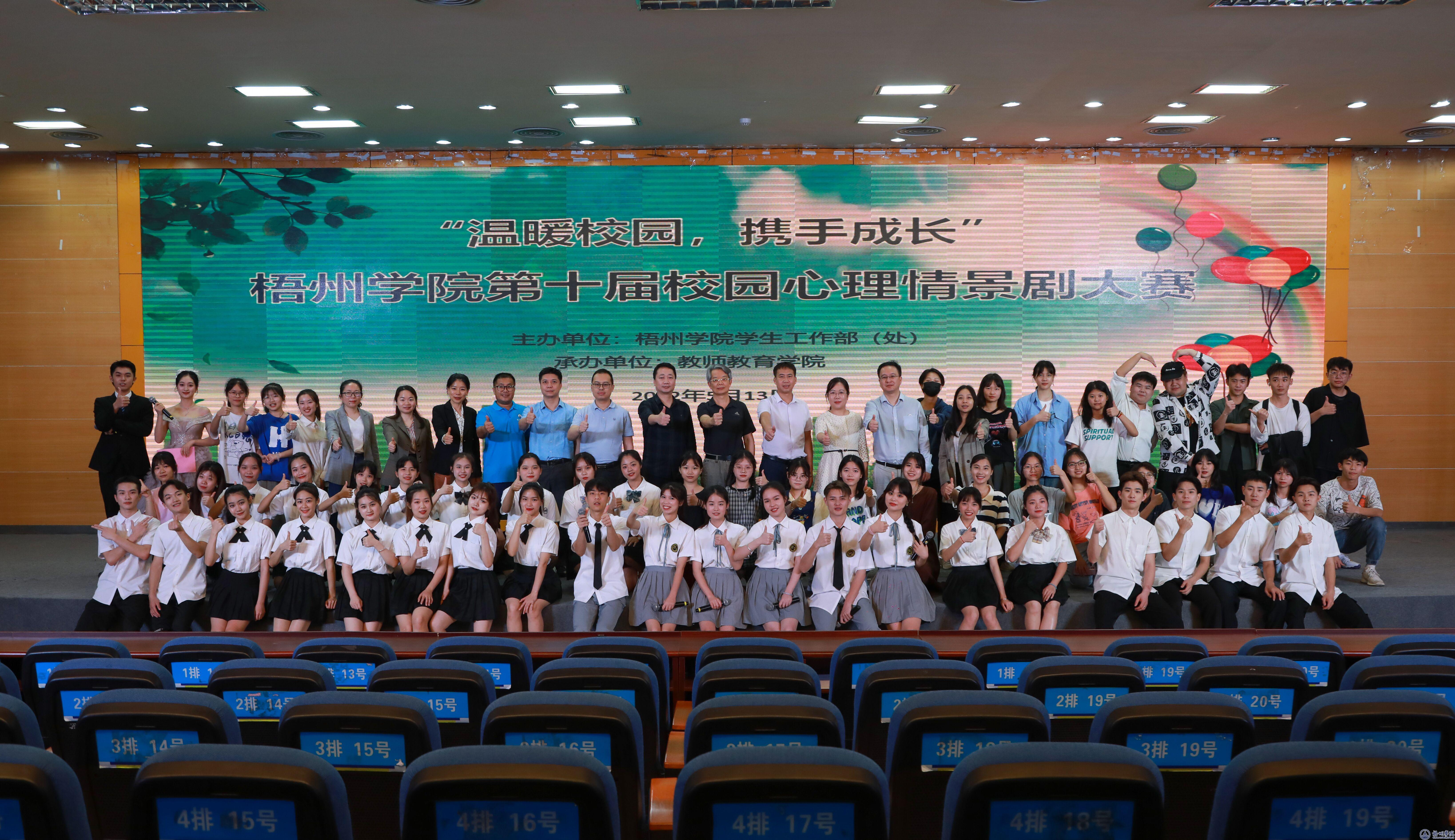 5月13日晚,由学生工作部(处)主办,教师教育学院承办的梧州学院第十届校园心理情景剧大赛在明理楼学术报告厅举行。学生工作部(处)、各二级学院负责人,心理健康服务中心老师以及200名学生代表观看了本次大赛。
