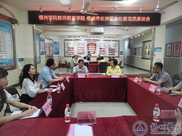 调研组参观了梧州市群众艺术馆、梧州市长洲区文化馆并开展座谈。座谈会上,双方就围绕院音乐、舞蹈专业学生实践、实习及就业的相关工作进行了深入交流与探讨。市群众艺术馆负责人、长洲区文化馆有关负责人表示希望在学校在校生的实践、实习方面提供支持,积极构建学生成长平台。