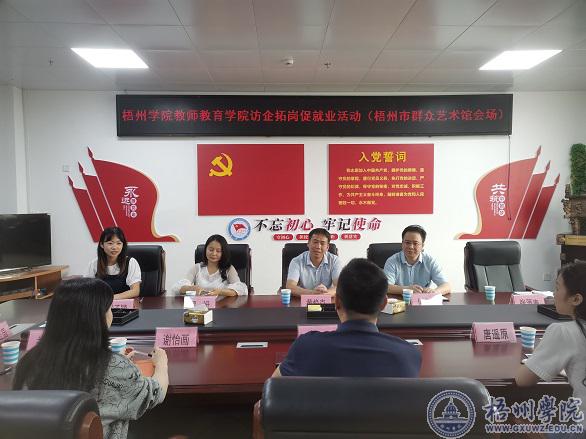 2022年5月20日下午,教师教育学院班子成员和音乐、舞蹈专业辅导员一行5人到梧州市群众艺术馆、梧州市长洲区文化馆开展访企拓岗活动。