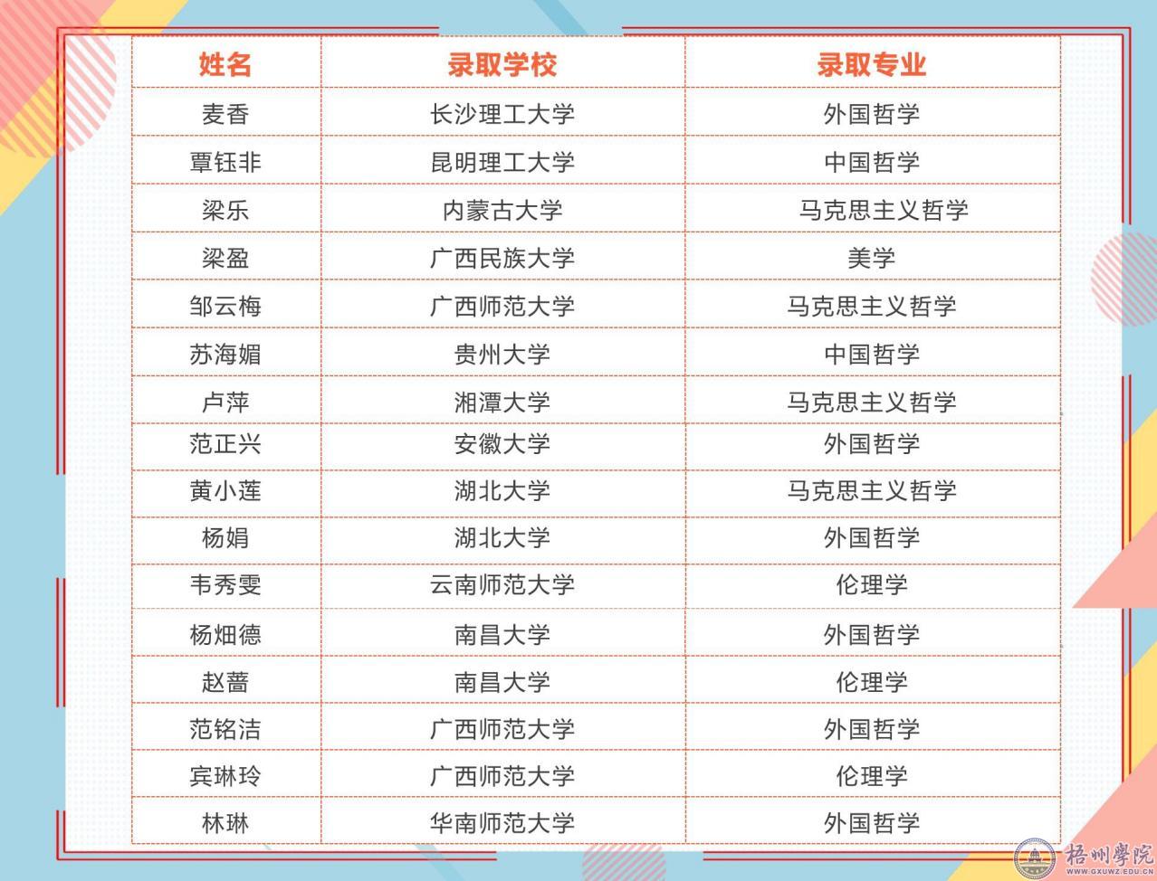 马克思主义学院2018级哲学专业学子考研捷报频传,2022年考研录取人数共计16名,又一批优秀学子在更高平台上继续学习和发展。马克思主义学院哲学专业自2013年设立至今,已有125名学生考取研究生,平均录取率为45%。